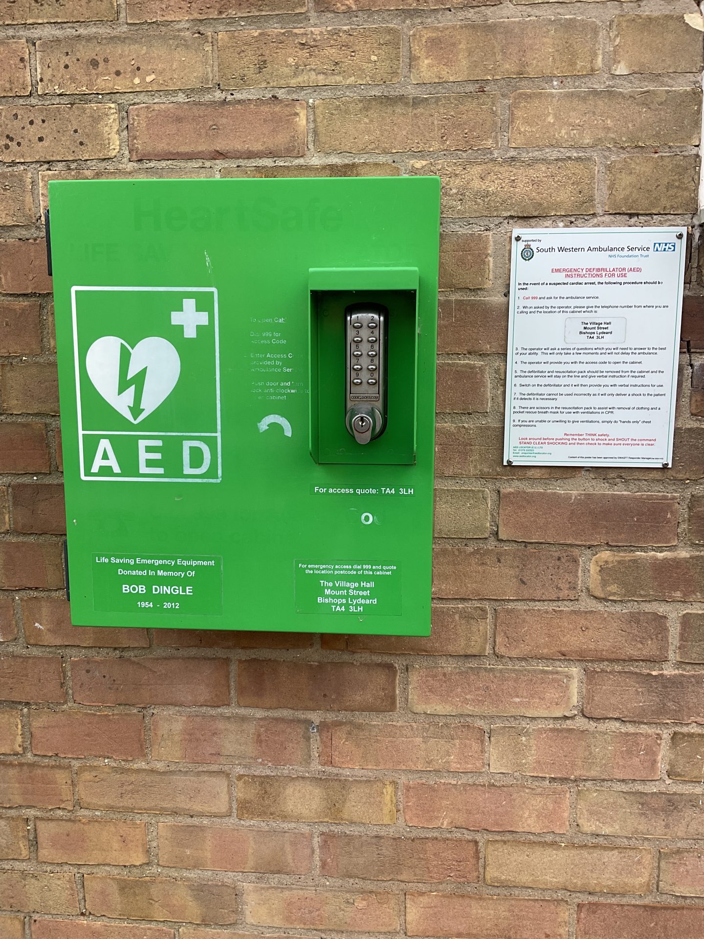 Location of defibrillation units. NOTE: There is a Defibrillator and Bleed Kit at the Village Hall. There are also Defibrillators at St Mary's Church and Darby Way Community Hall.