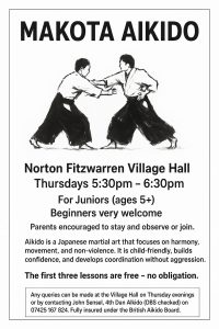 Makota Aikido is a small aikido club currently practicing in Norton Fitzwarren Village Hall on Thursday evenings. They are looking for more young people to join our youth group, as they have recently had several older members graduate to the adults class.